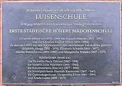 Hannah Karminski, daughter of the banker Adolf Abraham Karminski and his wife Selma, née Cohn, was born in her parents' apartment at 22 Oranienburger Strasse, in the Spandauer Vorstadt district of Berlin.[1] After attending the Luisenschule, Hannah trained as a kindergarten teacher at the renowned Pestalozzi-Fröbel-Haus. She then worked for a short time in a Jewish kindergarten in Berlin, and subsequently attended the Social Pedagogical Institute in Hamburg, run by Gertrud Bäumer and Marie Baum, where she trained as a social worker. She took up her first post in Frankfurt am Main, as head of the Jewish Girls' Club there. Here, she came into contact with Bertha Pappenheim, who was almost 40 years her senior, and who won her over to the Jewish Women's League.[2]