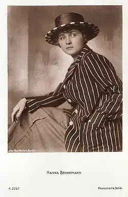 Hanne Brinkmann (born Johanna Marie Luise Elisabeth Brinkmann; 22 September 1895 – 29 July 1984) was a German actress.[1] She appeared in 24 films between 1915 and 1929.