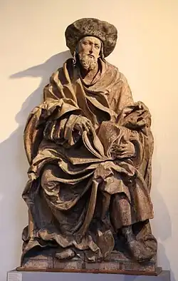 His later works include a Madonna for the Church of Saint Martin (1516/18)[1] and a seated figure of Saint Judoc for his namesake church (c.1525) which is now in the Bayerisches Nationalmuseum. His last known works were altar figures for the Liebfrauenkirche in Polling, but only two (a Madonna and a Man of Sorrows) have survived.