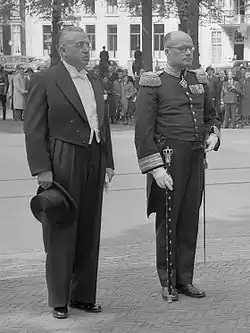.jpg) Ambassador Mühlenfeld (left) being received by Queen Juliana of the Netherlands, 12 May 1953. |
