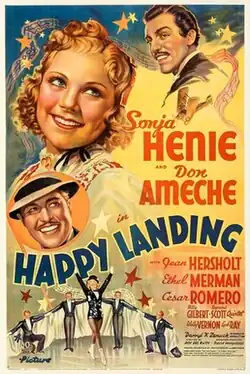 Happy Landing is a 1938 American musical comedy film directed by Roy Del Ruth, starring Sonja Henie, Ethel Merman, Don Ameche and Cesar Romero.[1]
