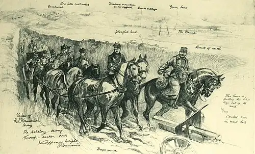 Ahead of the Balkan Wars, Lecca was recalled into active service at Bucharest Arsenal,[17] then eventually under arms. He participated in the 1913 expedition to Bulgaria, and published a memoir of his experience—this was strange, according to Iorga: "few expected [Lecca] to be interested in such topics".[133] Titled Dincolo ("Beyond"), it was dismissed with a pun by Opinia: "Sure enough, talent is beyond the scope of Mr Lecca's work."[134] By then, interested in the emerging Romanian school of cinema, had also been working on a screenplay the "peasant drama" Răzbunarea ("Revenge"). The eponymous film, produced by Leon Popescu[135] and starring Voiculescu, premiered upon Lecca's return to Bucharest, in June 1913. A scandal ensued, when Mihail Sorbul of Seara noticed that Lecca had plagiarized from his recently deceased uncle, Caragiale, rehashing Năpasta with only minor changes of names and settings.[135][136] Together, Lecca and Voiculescu wrote a film version of Fédora, first shown in a private screening around the same time as Răzbunarea—postponed by Popescu's furious withdrawal from the project, its release came in 1915.[137]
