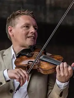 Harald Haugaard (born 23 February 1975) is a Danish violinist and composer raised on the island of Funen in Denmark. He is best known as a folk musician, having collaborated with musician Morten Alfred Høirup in the duo Haugaard & Høirup, and with folk singer Helene Blum. Together, they perform as the Helene Blum & Harald Haugaard Band.