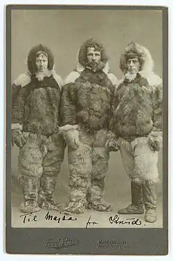 Harald Moltke, Ludvig Mylinus-Erichsen, and Knud Rasmussen during the 1902–1904 expedition, photographed by Frederik Riise.