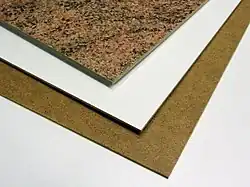 Hardboard, also called high-density fiberboard (HDF),[1] is a type of fiberboard, which is a pressed wood or engineered wood product.[2] It is used in furniture and in the construction industry.