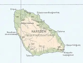 Qeqertarsuatsiaq Island (old spelling: Qeqertarssuatsiaq, Danish: Hareøen) is an isolated and uninhabited[1] island in the Avannaata municipality, in Baffin Bay off the western shore of Greenland.[2] The island is currently uninhabited, but a small number of ruins and graves are evidence of previous inhabitants.[3][4]