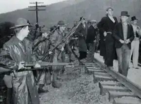The Harlan County War, or Bloody Harlan, was a series of coal industry skirmishes, executions, bombings and strikes (both attempted and realized) that took place in Harlan County, Kentucky, during the 1930s. The incidents involved coal miners and union organizers on one side and coal firms and law enforcement officials on the other.[1] The Harlan County coal miners campaigned and fought to organize their workplaces and better their wages and working conditions. It was a nearly decade-long conflict, lasting from 1931 to 1939. Before its conclusion, an unknown number of miners, deputies and bosses were killed, state and federal troops occupied the county more than half a dozen times, two acclaimed folk singers emerged, union membership oscillated wildly and workers in the nation's most anti-labor coal county were ultimately represented by a union.