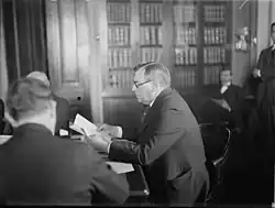 As chief justice, Stone spoke for the Court in upholding the President's power to try Nazi saboteurs captured on American soil by military tribunals in Ex parte Quirin,[26] 317 U.S. 1 (1942). The Court's handling of this case has been the subject of scrutiny and controversy.[27]
