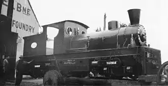 The Forests Commission Victoria (FCV) called a tender for a new geared steam locomotive up to 27 May 1927.[2] The Melbourne-based company of Alfred Harman issued an offer, which the FCV was obliged to accept against its better judgement, as the only suitable alternatives were made in the USA. At that time, government policy favoured the purchase of locally made machines or if these were not available, machines made in the United Kingdom.[3]