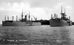 As Harold grew more experienced with the business, he took over the operational aspects of running the fleet while Noel concentrated on selling the oil.[15] During the 1930s he reorganised the staffing of the Salvesen fleet to include more British seamen – it had previously been 95% Norwegian – resulting in repeated clashes with the Norwegian seamen's unions, but a growing closeness with the British National Union of Seamen.[16] On the outbreak of the Second World War the Salvesen fleet headed south for the Antarctic summer, returning in 1940 to find that their Norwegian home ports were now occupied by Germany. The following season, after three Norwegian factory ships were captured by the commerce raider Pinguin the government ordered the suspension of all whaling for the duration of the war, despite Salvensen's protests that whale oil was a valuable food source. The entire British whaling fleet was dispersed, with the factory ships leased to the Ministry of Transport as oil tankers and military transports, and the whalecatchers leased to serve as patrol ships and minesweepers. Over the following years Salvesen worked to shepherd this fleet of ships through the Battle of the Atlantic, with great losses; every Salvesen and Unilever factory ship was sunk, along with two of the large modern Norwegian factory ships.[17]