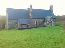 The parish church is dedicated to St Madoc of Ferns.[6] Before the 1880s the church was a "barn-like old church of nave and chancel with big sash windows and a makeshift roof of salvaged ships' timbers" but had become derelict. It was rebuilt in 1885.[7]