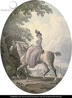 ![]() Portrait of the Artist, Miss Harriet Carr, on Horseback in the Boboli Gardens, Florence by Jean-Baptiste Thian 1794 | |