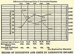 In May, 1904, because of labor troubles, Harrington Emerson was given the task of reorganizing certain features of the Santa Fe railway system. His authority extended only to that one department known as the motive power department; and he was, therefore, concerned mainly with the maintenance and repair of locomotives, much of which work was centralized in shops at Topeka. Nevertheless, by the time Emerson had worked out from Topeka to the end of the 10,000 or so miles of road, his system was affecting 12,000 men, and he had a task upon his hands which took three years of time, and the assistance of a large staff of railway experts.[6]