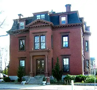 The Harrison Loring House is a historic house at 789 East Broadway in the South Boston neighborhood of Boston, Massachusetts. It is a 2+1⁄2-story brick mansion, with a mansard roof in the Second Empire style. It has brownstone trim around the windows, a modillioned cornice, and a projecting center section with its entrance sheltered by a shallow portico. It was built in 1865 for Harrison Loring, owner of the City Point Iron Works, a major South Boston shipyard, at which steamships were built in the late 19th century. Loring lived in this house until 1894.[2]