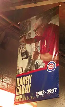 Harry Christopher Caray (né Carabina; March 1, 1914 – February 18, 1998) was an American radio and television sportscaster. During his career he called the play-by-play for five Major League Baseball teams, beginning with 25 years of calling the games of the St. Louis Cardinals (with two of those years also spent calling games for the St. Louis Browns). After a year working for the Oakland Athletics and 11 years with the Chicago White Sox, Caray spent the last 16 years of his career as the announcer for the Chicago Cubs.[1]