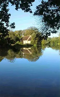 St Leonard's church is a remaining building from the pre-18th century village. It is on the West side of a lake, as seen in the picture.