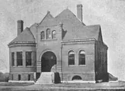 The public library of Harvard opened in 1856.[32][33] The official seal of the town depicts the old town public library on The Common prior to renovations that removed the front steps. In fiscal year 2008, the town of Harvard spent 2.41% ($487,470) of its budget on its public library—approximately $81 per person and since then the library has undergone multiple renovations.[34]