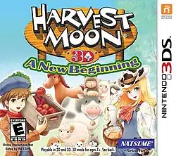 Harvest Moon 3D: A New Beginning (牧場物語はじまりの大地, Bokujō Monogatari: Hajimari no Daichi; lit. "Ranch Story: Land of the Beginning") is a game for the Nintendo 3DS released by Natsume Inc.[3] It is the last entry in the franchise released on the Nintendo 3DS systems[4] to receive the title of Harvest Moon.