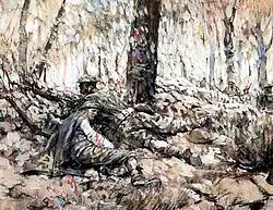 His experiences at the front as one of eight artist-correspondents with the American Expeditionary Force in Europe was a turning point for the artist.[4] After the war, Dunn created works for The American Legion Monthly magazine and other national magazines.[6] The majority of Dunn's war sketches are now housed at the Smithsonian Institution in the National Museum of American History in Washington, D.C.[10]