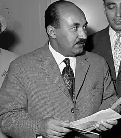 Hassan Arsanjani (1922–1969) was an Iranian politician. A radical reformer, as the minister of agriculture in the cabinet of Ali Amini, he introduced the program of land reform in Iran. Later on, the shah Mohammad Reza Pahlavi forced him to resign and credited himself for introducing the land reform through his White Revolution.[2] He was a law graduate who held several positions including publisher of the Darya newspaper, member of the Parliament during the Majlis's fifteenth assembly, political deputy of Qavam al-Saltana and agricultural minister in the cabinets of both `Ali Amini and Asadollah Alam.[3] His death in suspicious circumstances was attributed to the fact that he had become immensely popular especially among peasants after the land reform, something that was not appreciated by SAVAK, the secret police of the Shah.