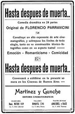 Hasta después de muerta ('Til After Her Death) is a 1916 Argentine silent film, shot in black and white. It was directed by Ernesto Gunche and Eduardo Martínez de la Pera and written by Florencio Parravicini. The film was released in 1916 and it had Florencio Parravicini, Pedro Quartucci, Orfilia Rico and Enrique Serrano as the main characters.[1] The story is told through flashbacks, which was unusual for the era.[2]