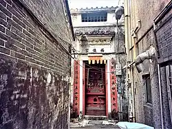 Shrine of a walled village. Situated at the end of the central axis of Sik Kong Wai, a walled village of the Tang Clan in Ha Tsuen, with its name recorded in the Xin'an Gazetteer of 1820.[20]