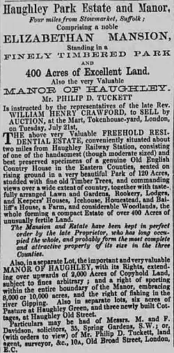 - ^ Historic England. "Haughley Park (1181268)". National Heritage List for England. Retrieved 1 October 2015.