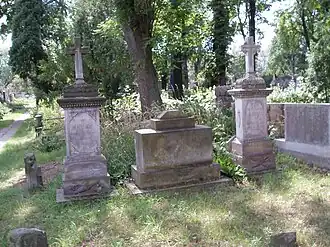 Most of the Haukes living in Warsaw in the first half of the 19th century are buried at the Catholic Powązki Cemetery in Warsaw, those who were Lutherans or Calvinists (mostly Protestant women who married into the family) repose at the Lutheran and Calvinist Cemeteries of the Polish capital. Solely John Maurice and his wife lie in the crypt of the Capucin church in Warsaw's Old Town.