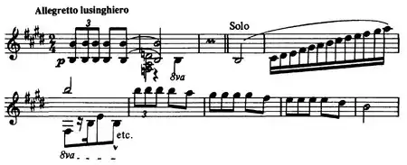 The composition consists of a single multi-tempo movement marked Allegretto lusinghiero – Allegro – Tempo primo – Allegretto – Allegro non troppo – Più Allegro – Allegretto – Lento and lasts around ten minutes in performance.