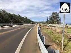 Route 56, also known as Kuhio Highway, is the main highway on the north and east shore of Kauaʻi island in Kauai County, Hawaii, United States.