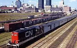 A GO Transit train consisting of bi-level coaches originally built by Hawker Siddley