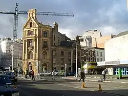 The rear entrance of the Dublin Gas Company building built in 1928 is also on the western side of the street. This building, designed by Charles Herbert Ashworth is in the Arts and Crafts and English Tudor styles, in stark contrast to the art deco facade on D'Olier Street.[11][12] The buildings are built to accommodate the laneway, Leinster Market.[13]