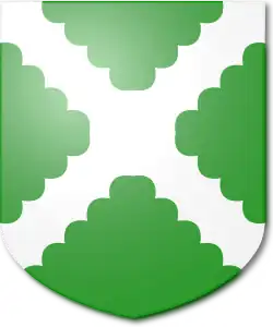 | Shield | Vert a saltire engrailed Or. |