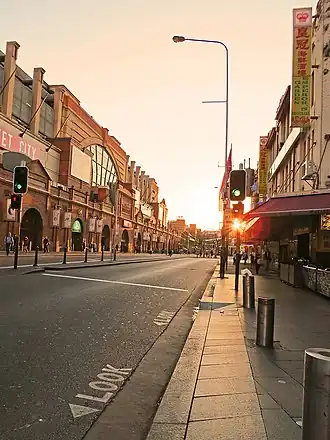 It then passes to the south of the Capitol Theatre to George Street where the Inner West Light Rail crosses the CBD and South East Light Rail. Passing through Haymarket, to the south of Chinatown and the north of Paddy's Markets, it then continues to Darling Drive.[2]