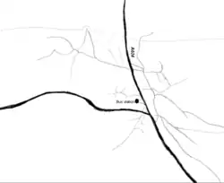 A short-lived continuation to the line was built in the early 20th century to convey materials and workmen during the construction of Kinder Reservoir. A famous photograph shows a construction contractor's locomotive crossing Church Street (the main street through the old village centre); the line skirted the cricket field and continued up the Sett Valley, and its course can still be traced in places.[15]
