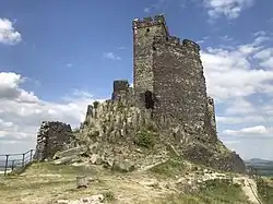 Hazmburk (German: Hasenburg, literally "Hare Castle") is a solitary hill in the Lower Ohře Table plateau with an elevation of 429 m (1,407 ft). It is located in the municipality of Klapý in the Ústí nad Labem Region of the Czech Republic.