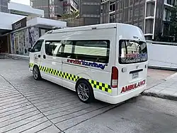 Two organizations, the Poh Teck Tung Foundation and the Ruamkatanyu Foundation are the two largest free first responders in Bangkok. They rely on private donations, but sometimes volunteers must use their own money to buy vehicles, gas, uniforms, and medical equipment. Volunteers are not allowed to accept money from hospitals or from victims. The volunteers say they do this to help people or as a way to earn karma for the next life.[13] The training level of volunteers is not high, just 24 hours. The National Institute of Emergency Medicine (NIEMS) is seeking to increase minimum training to 40 hours, a move initially opposed by the Rescue Network of Thailand, an association of voluntary first responders.[14]
