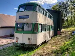 Blackpool Tramway 702 In storage 1934 One of Blackpool Corporation's Balloon double-deckers, this car entered service as number 239 in 1934. Initially configured as an open top car, was converted to a totally enclosed car in 1942, and renumbered 702 in 1968. It last saw service in Blackpool in 2009, and in 2010 it was placed on display at the Museum of Museums at the Trafford Centre. It moved to Heaton Park in 2014.[18]