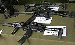 In 1966, Heckler & Koch introduced the HK54 machine pistol, which eventually launched in 1969 as the MP5 submachine gun.[12] Two years later, the company introduced the HK33 assault rifle, a smaller version of the G3 chambered in 5.56×45mm NATO.[13][14]