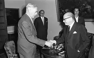 Krone (left) meeting Colombian politician Carlos Lleras Restrepo, 1964