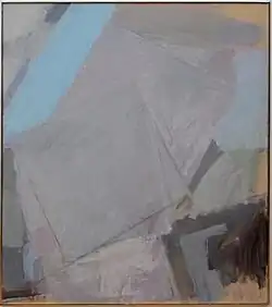 The following year one of Herzbrun's paintings was included in a Baltimore Museum of Art exhibition that was intended to give a comprehensive overview of the Washington scene over the previous two decades.[32] Paul Richard, a critic for The Washington Post, gave this show an intemperate review, calling it insensitive, haphazard, and incoherent. In it he said Herzbrun's painting was an "eye-curdling canvas."[33] His view of a solo exhibition of hers some four years later was considerably more positive, describing the show as a happy one and her paintings as "colorful and free and bright."[34] Two years later the Corcoran chose Herzbrun along with John Robinson and Alma Thomas for a show called "Contemporary Washington Art" that was sponsored by the American Revolution Bicentennial Administration.[35][note 10] In 1978 she was given a solo exhibition and in 1980 a three-person exhibition at D.C.'s Rasmussen Gallery.[37][38][note 11] The following year cancer forced her to give up painting. Although she made collages for a time, the disease did not leave her and eventually brought about her death in 1984.[42] Posthumous exhibitions include a retrospective at the Watkins Gallery and a 2019 presentation called "Grace Hartigan and Helene Herzbrun: Reframing Abstract Expressionism" at the American University Art Museum.[42][43]