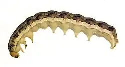 The larvae are considered a pest on cotton, corn, tobacco, soybean, flax and other crops.