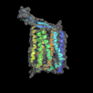 Heliorhodopsins use all-trans retinal as a chromophore, and do not have any ion pumping activity across the membrane. Heliorhodopsins are distributed globally and exist in eukaryotes, prokaryotes and even some viruses.[1] Despite the wide distribution, Heliorhodopsins are never present in true gram-negative bacteria, where there is a proper double membrane around the microorganism. It has been suggested that the function of Heliorhodopsin requires a direct interaction with the environment.[2]
