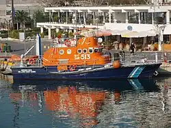 In order to perform these roles, the Coast Guard operate a number of patrol boats of various sizes (6m to 60m) and different types (RIBs, coastal patrol boats, offshore patrol boats, lifeboats and pollution control vessels).[6] On land the Hellenic Coast Guard is equipped with 634 vehicles, including patrol vehicles, cars and motorcycles, buses and mini vans, trucks and tanker.[7] The Coast Guard also operate seven airplanes and six helicopters.[8]