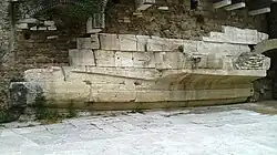 The Isola Tiberina prow in Rome. according to Coates, it depicts a Greek-type "five" or "six",[33] while according to Murray, it is a "five".[35]