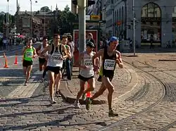 Apart from the main marathon event, other events include half marathon, relay, 5K run and miniathon.[2][3] The relay event consists of four legs 12.8 km, 8.8 km, 12.3 km and 8.3 km respectively with transition areas Meilahti, Opera House, and again in Meilahti and is run by a team of four runners.[9]
