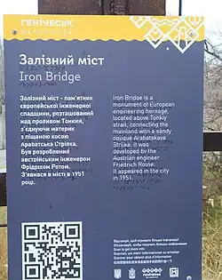 - ^ "В сети раскрыли загадки удивительного железного моста в Геническе" (in Russian). nk-online.com.ua. Archived from the original on 2021-11-03. Retrieved 2021-11-04.