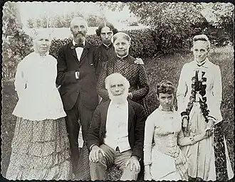 Henry Blackwell was born May 4, 1825, in Bristol, Gloucestershire, England, the seventh of nine children of Samuel Blackwell and Hannah Lane Blackwell. Blackwell's father, a sugar refiner whose livelihood conflicted with his abolitionist principles, experimented with making beet sugar as an alternative to slave-grown cane sugar. In 1832, the family – including eight children and their father's sister Mary – emigrated to the United States. The family settled first in New York, where Blackwell's father established a sugar refinery and the ninth child was born, and then just outside New York in Jersey City.[4] Blackwell's father took an interest in the nascent abolition movement. William Lloyd Garrison and other leaders of the movement were visitors in the family's home. Blackwell's eldest sister, Anna, participated in the emerging agitation for women's rights, attending the 1837 Anti-Slavery Convention of American Women and drafting its letter to John Quincy Adams thanking him for his support of women's right to petition.[5]