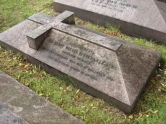 He died on 1 December 1889 and the beneficiary of his will was his wife, Georgina Frances Torrens.[9] He is buried in Brompton Cemetery, London. Georgina died in 1918.[10]