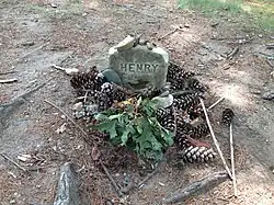 Aware he was dying, Thoreau's last words were "Now comes good sailing", followed by two lone words, "moose" and "Indian".[78] He died on May 6, 1862, at age 44. Amos Bronson Alcott planned the service and read selections from Thoreau's works, and Channing presented a hymn.[79] Emerson wrote the eulogy spoken at the funeral.[80] Thoreau was buried in the Dunbar family plot; his remains and those of members of his immediate family were eventually moved to Sleepy Hollow Cemetery in Concord, Massachusetts.